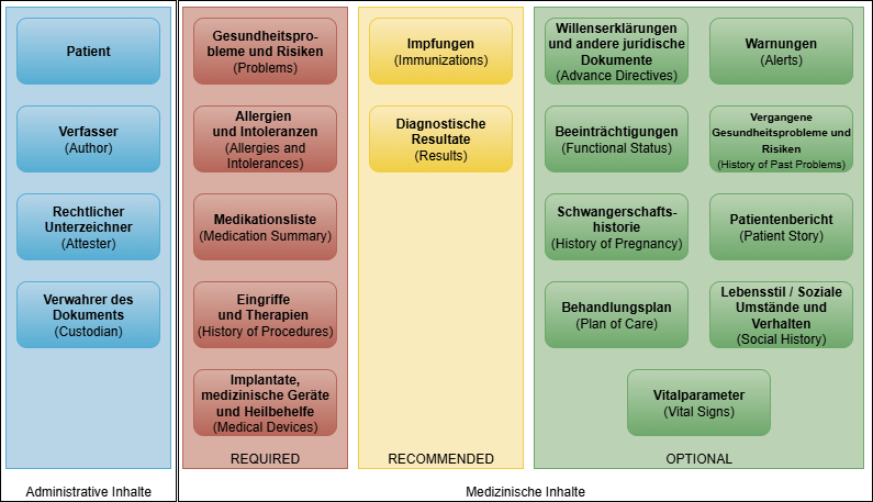 Die Austrian Patient Summary (APS) enthält neben administrativen Inhalten Strukturen, um verschiedene medizinische Inhalte zu dokumentieren.