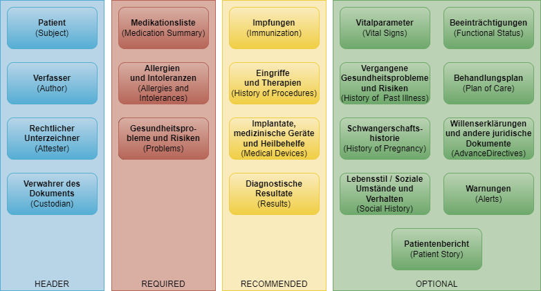 Die Austrian Patient Summary (APS) besteht aus folgenden Sektionen (Module):