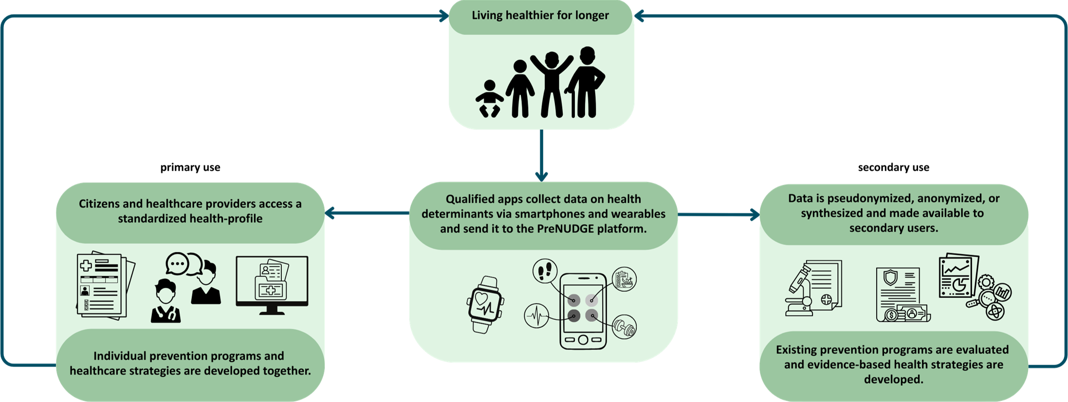 • Establishment of an ecosystem of app providers for collecting health indicators: interface between citizens and platform